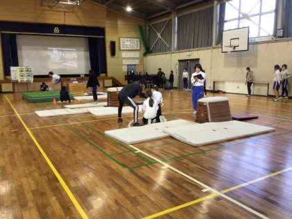5、6年生が体育科の授業で、跳び箱を跳んでいます。
