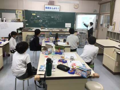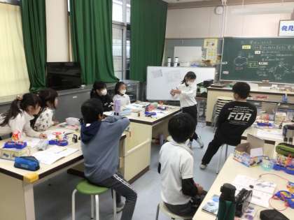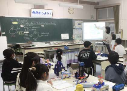 「電池の向きを変えたら、電流の流れはどうなるか」を考えています。