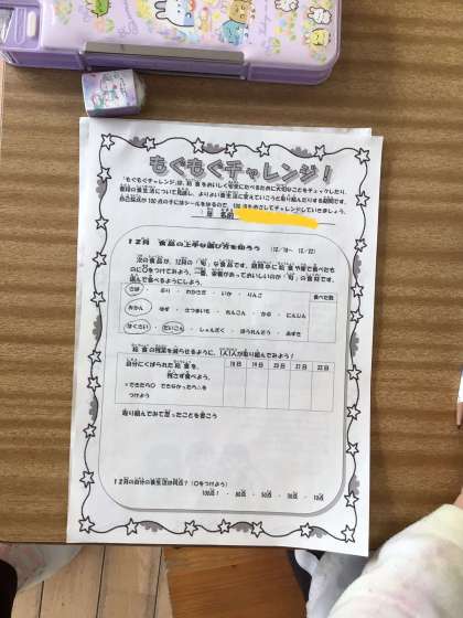 今日の給食で食べた野菜は何だったかなと確認して丸をつけていました。