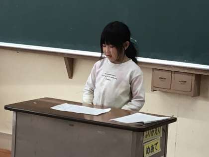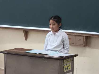 モググクチャレンジが終わった後、国語の授業で書いたスピーチ原稿を一人ずつ発表していました。