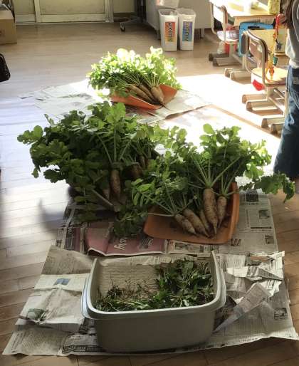 畑で育てていた大根を収穫しました。