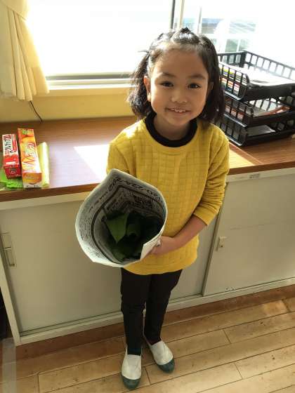 大根だけでなくほうれん草も取れたようで、新聞紙に包んで家に持ち帰ります。