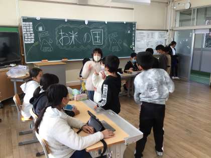 5年生の子たちが「お米の国」ということで、お米についてクイズを出し、クイズに答えながら進むと最後にミネアサヒがもらえるという企画を開いてくれました。