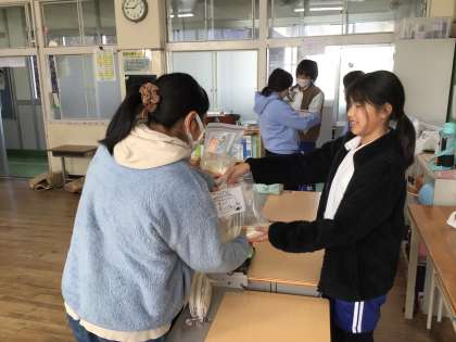 5年生が全ての学年をお米の国へ招待して、お米を1人に4合プレゼントしました。