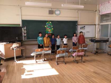 2年生が企画したクリスマス会に1年生を招待しました。司会やゲーム説明等、2年生は、自分の担当する係をしながら、みんなで楽しく遊びました。最後には、音楽の授業で練習した「こぎつね」と「ゆうやけこやけ」の音楽会をしました。1年生は、4月から習った鍵盤ハーモニカもとっても上手でした。