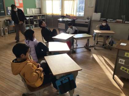 さわやかタイムに、健康いきいき委員会の子たちが姿勢についてお話に来てくれました。