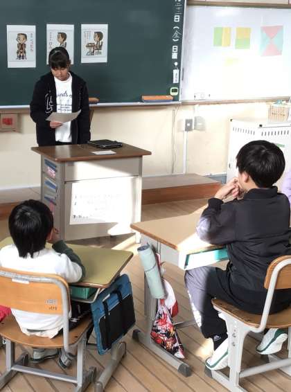 姿勢のポイントを黒板に貼り、できているかを確認しました。