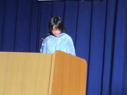 5年生の二人はこれからあるスキー学習や学習発表会への意気込みや最高学年に向けての準備についての意気込みや一輪車などで今までがんばったことなどを話してくれました。