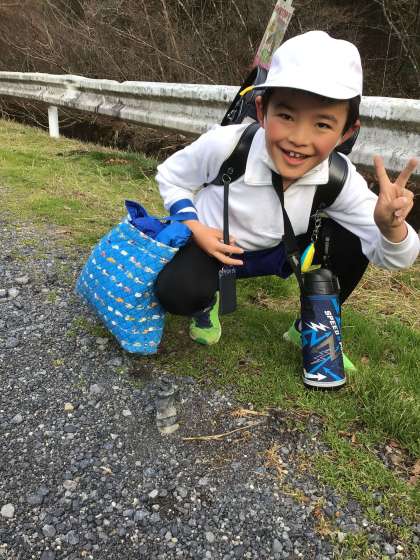 道路を渡る時は車がいないかを確認して手をあげていました。