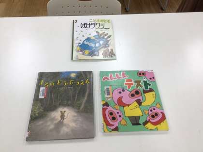 低学年の絵本「へんしんテスト」、中学年の絵本「よるのどうぶつえん」、高学年「ばけタクシー」でした。