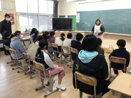 3人の方は読み聞かせが終わると図書室で絵本や読み聞かせのときのお話をしてみえます。