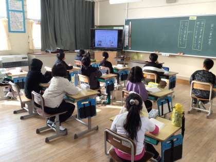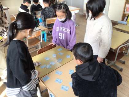 3・4年生が百人一首を学んでいるところに保護者の方が来てくださいました。