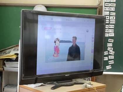 キャラクターと外国の方が英語で会話をしている場面を見聞し、どのような会話をしているかを話し合いました。かなり聞き取れましたね。