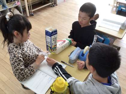 模型ができたらすぐに自分の腕と比べながら、筋肉の伸び縮みや長さなどに注目して観察していました。