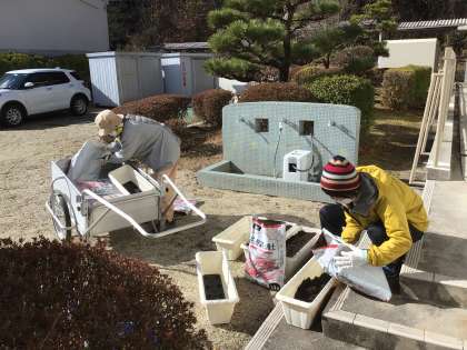 卒業式にきれいな花が咲くといいなあと思いながら作業をしています。