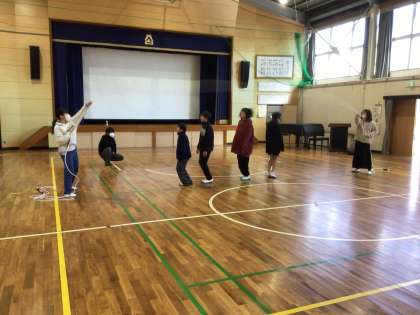 6年生の子たちが自主的に元気っ子タイムで大縄の練習をしていました。