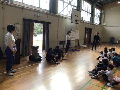 6年生の4人の子が司会やはじめの言葉、準備運動を分担して行なってくれました。