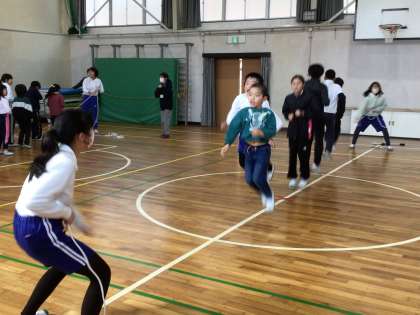 2月20日 全校なわとび大会 長縄跳び 公開日 2024/02/20 更新日 2024/02/20 お知らせ 全員の心をひとつにして跳びました。 辛いはずなのに、楽しんでいるようにも思えます。 みんな必死にたくさん跳ぼうと頑張っています。 結果は、1・3班 16回 2・5班 25回 4・6班 25回でした。 3組の班全部が総合5点となりました。 長縄跳びが多い方を勝利というルールでも、2・5班と4・6班が一緒ということで、決戦を行うことになりました。