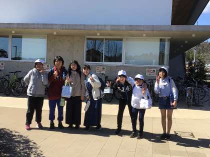 バスターミナルがあることも珍しいことを知り、最後にバスターミナルの近くで集合写真を撮りました。