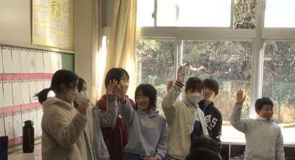 6年生でもわかるように考え方を中学生のお兄さんに説明をしてもらってから、質問してくださいました。全員が手をあげて、代表の子が答えを言いました。もちろん正解です。