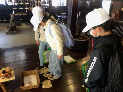機織りや藁草履、囲炉裏、くど、農機具などがありました。