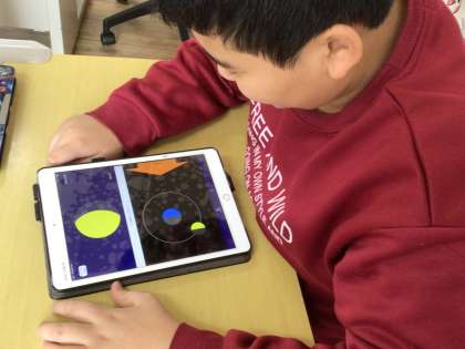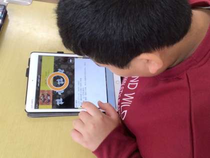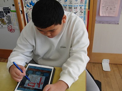 学習アプリを使って、漢字の学習や歴史上の人物、地球と月の関係を学習していました。