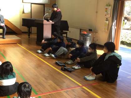 スクールガードさんにお礼の手紙と花束を渡しました。