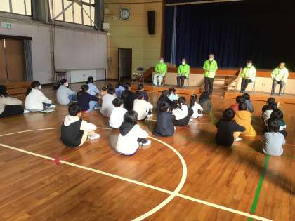 それぞれの通学団の代表者が感謝の気持ちを直接伝えました。