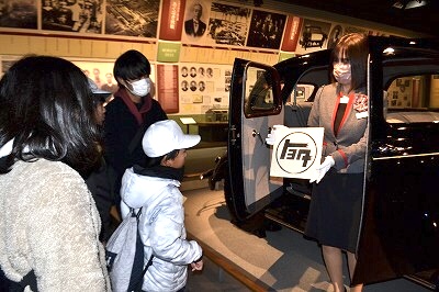 トヨタ自動車の歴史や当時の街のジオラマ、トヨタ経営者の方々が残された言葉などが展示されています。「トヨタ」になった経緯も教えていただいたようです。