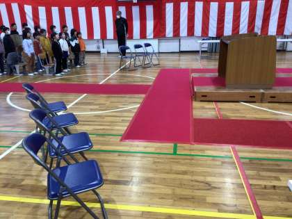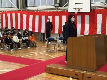 校長挨拶とPTA挨拶を教職員からの一言に変えて行いました。