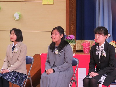 卒業式当日に欠席してしまった子たちの気持ちを代わりに伝えた子たちがいます。練習をする中で友達のいうことばも覚えてしまっていたのでしょうか。滞りなく贈る言葉が卒業生に届きました。卒業生も頷きながら聴いてくれました。