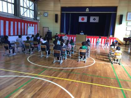 1年生の子はスピーチメモをあまり見ないでマラソン大会で頑張ったことを話しました。2年生の子はかけ算を頑張ったことを話し、7の段を実際に言いました。