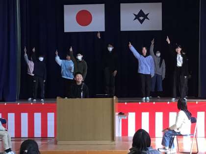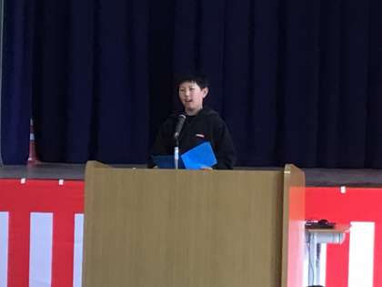 5年生の子のスピーチに5年生全員が壇上に上がりました。