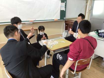 新しい先生の自己紹介やみんなで楽しむためにトランプを行いました。