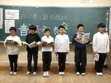 教科書が変わって、初めての教材でした。「おにぎり石の伝説」です。