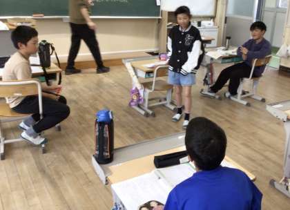みんなが何回も発言し、発言者の方を向いて聞いています。