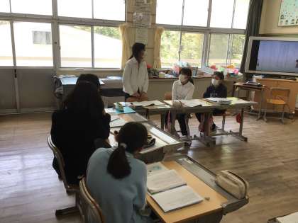 教材「さなぎたちの教室」の音読をするために、教材について学習しています。
