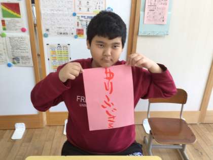 最初は、「ゆり」を大きく書いていたのですが、3クラスを書きたくなったようです。