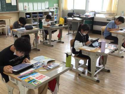 そして、タブレットで東の端や西の端、南の端、北の端は何か調べています。