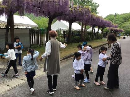藤の花を見たり、タブレットで藤の花を撮ったりしました。