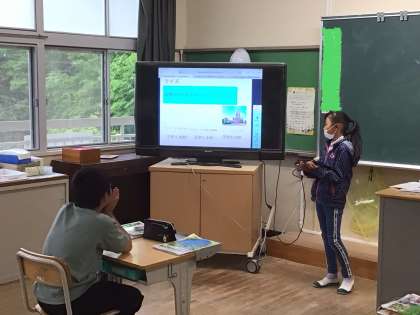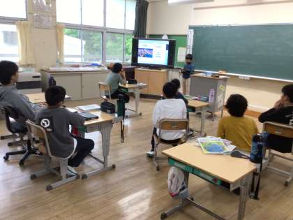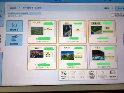 タブレットでいろいろな県の特徴を調べてクイズにしていました。