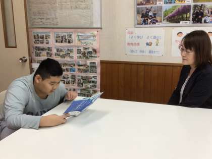 「日本国憲法」という本の朗読を聴かせに来てくれました。