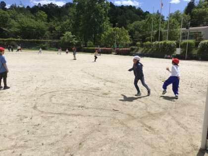 6年生が鬼です。6年生の子たちが一番走っていると思います。