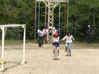 いつもだといろいろな学年が一輪車の練習をしているのですが、今日は6年生だけで練習をしていました。全然一輪車に乗れなかった子たちも上達してきています。運動会に焦点をあてているようです。どんな技ができるようになるのか楽しみです。