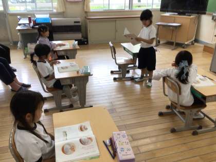 5月16日 1年生 国語科2 公開日 2024/05/16 更新日 2024/05/16 お知らせ 園の先生方に朗読の感想を言っていただきました。褒めていただいて、うれしくてうれしくてしょうがないという感じでした。 「さとうとしお」の教材で、さとうとしおの違いを文章から見付けていました。 なるべく短い言葉でというところが今日の学習で考えるところでした。 友達の意見に賛成のハンドサインを出していました。 園の先生方は元気な子どもたちの様子を見て、喜んで帰られました。