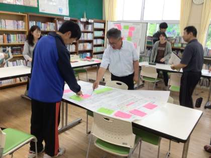 先日、3・4年生の授業を全教職員で参観したときのことを思い出しながら、よかったことや改善点などについて話し合いました。