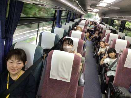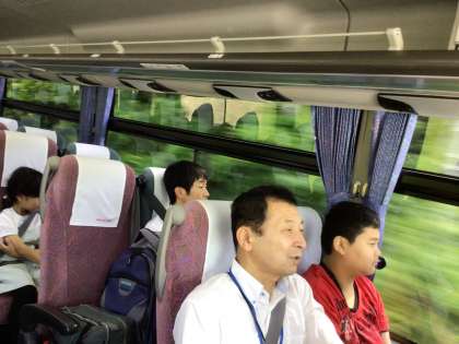 バスの中で、だんらんを楽しんでいます。