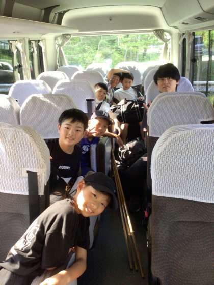 出発式では、代表の子が2日間の目標などを確認し、担任の先生からの注意事項を聞いて、元気よく「行ってきます」と言って、バスに乗りました。