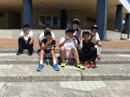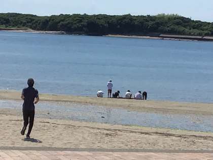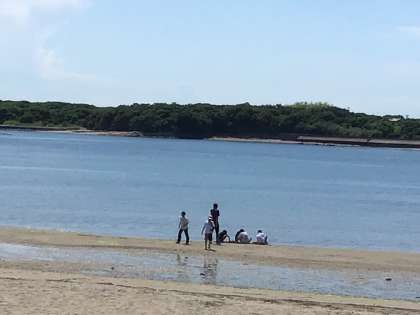 誕生日会を終えて、「石切り」がしたいということだったので、記念撮影後、もう一度砂浜で遊びました。