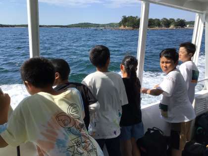 無事、船に乗りました。佐久島に、お世話になった方に、海に、お別れをしました。